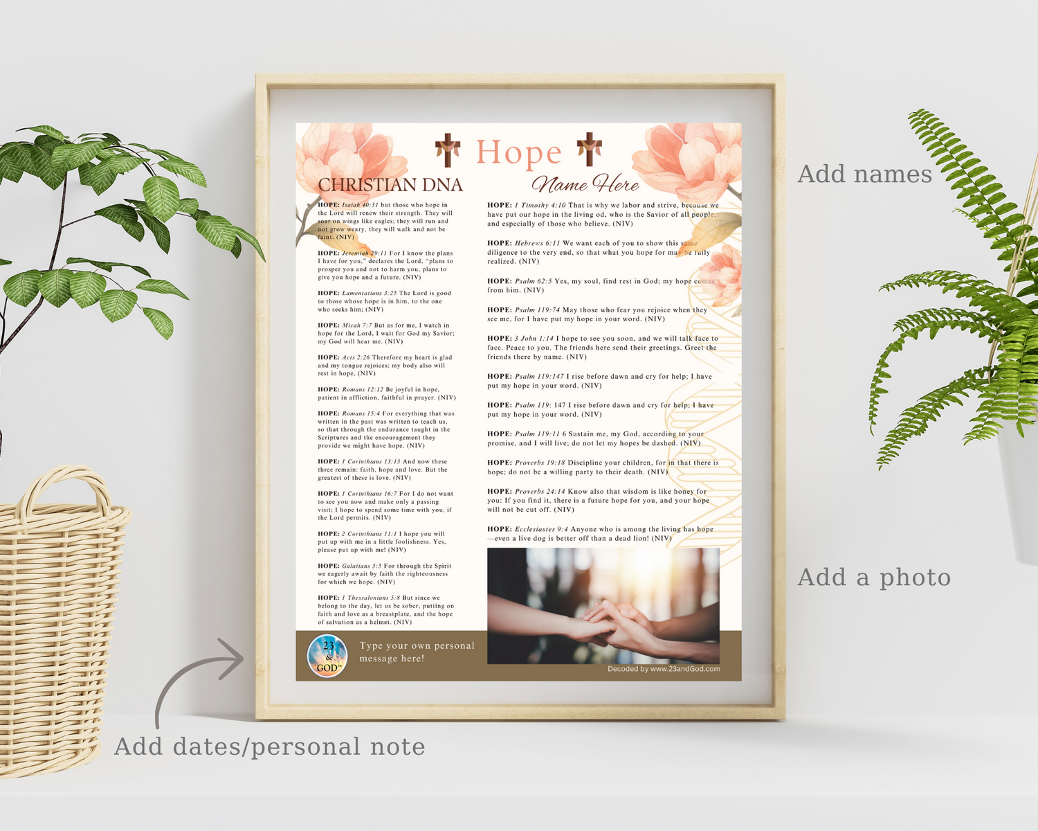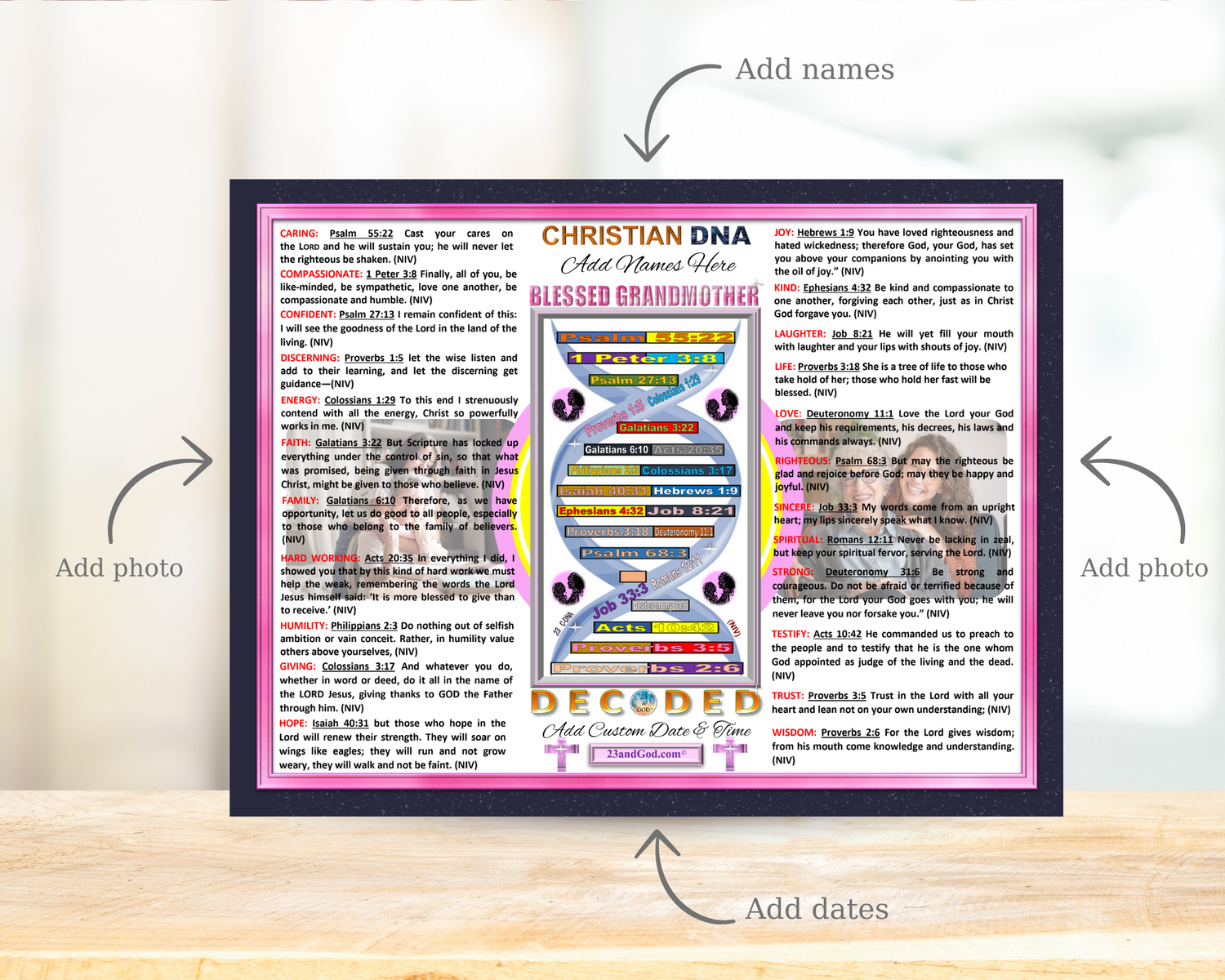 Every Christian DNA (C-DNA) graphic can be customized in three areas: